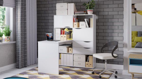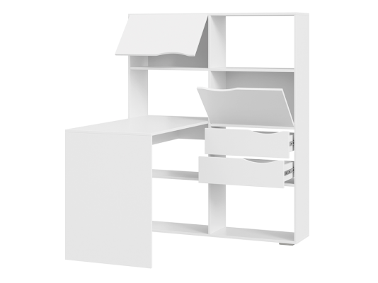 Стол письменный тип 7 станет вашим помощником в систематизации канцтоваров и других необходимых принадлежностей. Открытые полки обеспечивают хороший обзор и легкий доступ к книгам и учебникам, а за откидными фасадами можно скрыть наиболее важные предметы.