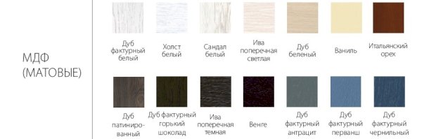 Возможные цвета фасадов: глянец, металлик, матовые.
