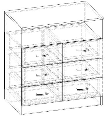 • Корпус, полки и фасады изготовлены из ЛДСП 16 мм с кромкой ПВХ 0,4 мм.