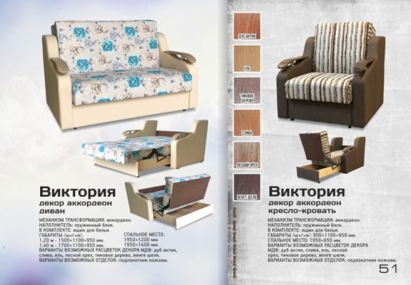 Кресло аккордеон Виктория с декором (Асмана) – товар доступен к покупке в интернет-магазине dommebeli-v-novom-urengoe.ru. Цена – 28 779 руб. без учета доставки. Стоимость дополнительных услуг и сроки получения мебели уточняйте у менеджера. Возможен безналичный расчет, оплата по карте на сайте.