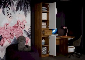 Шкаф КВИК-СТЕП ШК-002 идеально впишется в любой интерьер, будь то скандинавский стиль, минимализм или лофт. Сочетание текстуры дерева "Дуб Крафт золотой" и белых фасадов "Белый шагрень" придают шкафу элегантный и лаконичный вид.