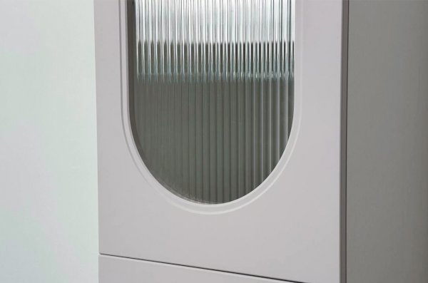 Корпус выполнен из ЛДСП толщиной 16 мм, фасад изготовлен из МДФ в плёнке ПВХ и декорирован фрезеровкой, характерной для серии Милана. Оригинальные круглые ручки и опоры завершают образ, подчёркивая аккуратный и современный дизайн мебели.