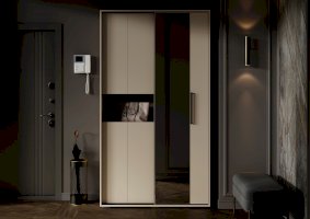Раздвижная система: Прихожая оснащена однополозной направляющей с черной площадкой, изготовленной из алюминиевого профиля, что значительно увеличивает срок службы изделия. Легкое перемещение дверей обеспечивается нижними роликами с шариковыми подшипниками.