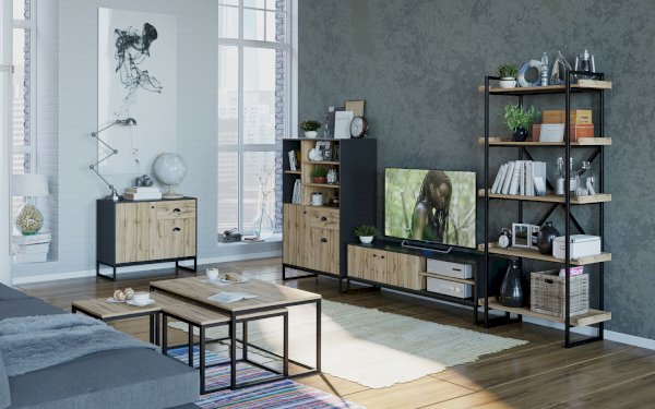 Модульная гостиная Лофт (Любимый дом) – товар доступен к покупке в интернет-магазине dommebeli-v-novom-urengoe.ru. Цена – 104 500 руб. без учета доставки. Стоимость дополнительных услуг и сроки получения мебели уточняйте у менеджера. Возможен безналичный расчет, оплата по карте на сайте.