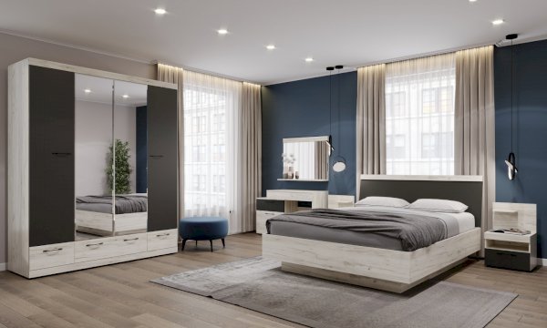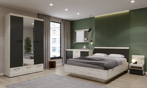 Кровать с ортопедическим основанием и подъемным механизмом Соната КРС-1600 Дуб Крафт белый/Антрацит