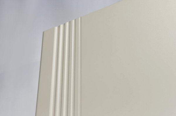Особое внимание заслуживает фрезеровка фасадов, которая придаёт шкафу изысканный вид. На одной из дверей расположено большое зеркало во весь рост, которое  позволит оценить свой образ перед выходом из дома.