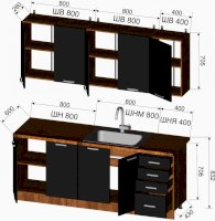 Шкаф нижний (с ящиками): 400х830х450 мм